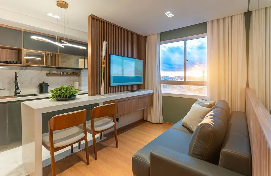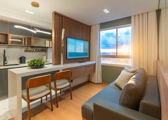 Das 1-Zimmer-Apartment Apartametno Inteiro Perto Da Arena Mrv E Expominas bietet einen Wohnbereich und eine voll ausgestattete Küche mit Blick auf die Stadt und Annehmlichkeiten wie eine Klimaanlage. Das Apartment stellt 1 Bad zur Verfügung. Des Weiterem gibt es einen Haartrockner und Handtücher im Badezimmer.